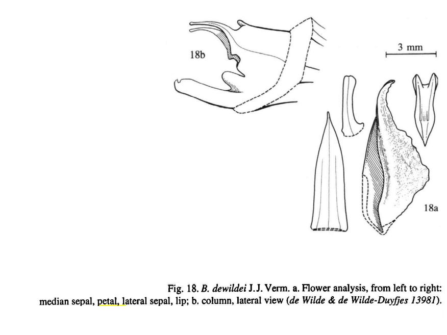 References W3 Tropicos, Kew Monocot list , IPNI ; *Blumea 41:357 J J Vermeulen 1996 drawing fide; The Bulbophyllum of Borneo Verm. O’Byrne and Lamb 2015 drawing/photo fide
