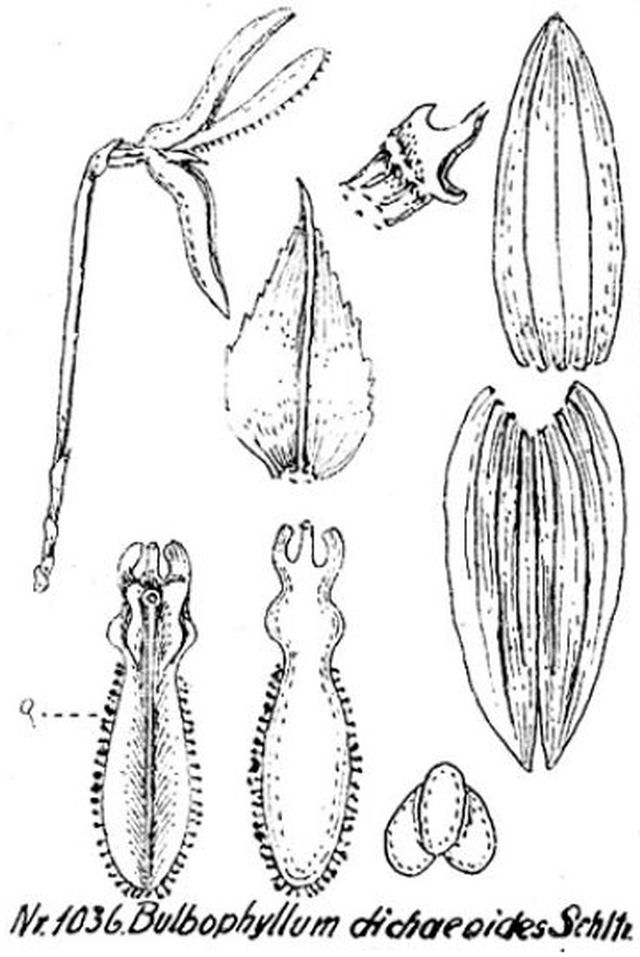 References W3 Tropicos, Kew Monocot list , IPNI ; *Orchidaceae of German New Guinea Schlechter 1982 drawing fide Bulbophyllum and Their Allies Siegerist 2001