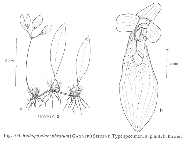 References W3 Tropicos, Kew Monocot list , IPNI ; Notes on Cirrhopetalum Seidenfadden 1973 drawing fide; Identification of the Orchids [Orchidaceae Juss.] Vietnam Averyanov 1994; Bulbophyllum and Their Allies Seigerist 2001 as Cirrhopetalum fibratum