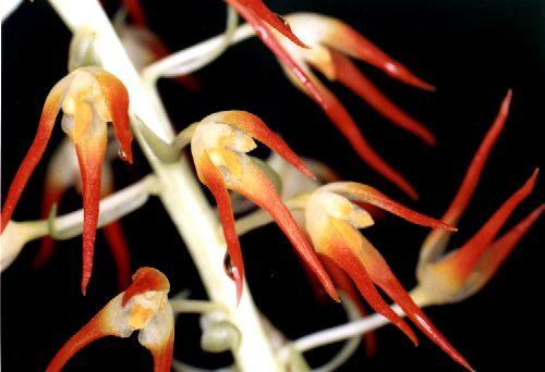 Common Name The Flame-Carrying Bulbophyllum [refers to the colored tips of the sepals and petals]