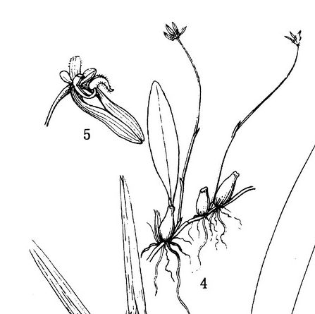 Found in northwestern Yunnan province of China in forests on tree trunks at elevations around 2000 meters as a mini-miniature sized, cool to cold growing epiphyte with a creeping rhizome that has .2 to .4" [5 to 1 cm] between each narrowly ovoid to bottle-shaped pseudobulb carrying a single, subsessile, oblong, leathery, obtuse apically, gradually narrowing below into the shortly conduplicate base leaf that blooms in the fall on a basal, suberect, short, often 4 to 5 flowered, umbellate inflorescence with narrowly lanceolate, acuminate floral bracts.