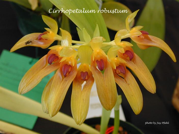 References W3 Tropicos, Kew Monocot list , IPNI ; Orchidaceae Of German New Guinea Schlechter 1913 as Cirrhopetalum pachybulbum drawing fide; Notes on Cirrhopetalum Seidenfaden 1973 drawing fide; Notes on Cirrhopetalum Seidenfaden 1973 as B pachybulbum; The Orchids of Papua New Guinea An Introduction Millar 1978 photo fide; The Illustrated Encyclopedia of Orchids, Prigeon 1982 photo fide; AOS Bulletin Vol 52 No 4 1983 photo fid; AOS Bulletin Vol 56 No 10 1987 photo fide; Orchid Australia Vol 12 No 3 2000 photo; Bulbophyllum and Their Allies Seigerist 2001 as Cirrhopetalum robustum; AOS Bulletin Vol 72 No 9 2003 as Cirrhopetalum robustum photo fide; AOS Bulletin Vol 74 No 1 2005 as Cirrhopetalum robustum photo fide; The World's Most Beautiful Orchids Allikas & Nash 2005 as Cirrhopetalum graveolens photo fide; AOS Bulletin Vol 79 #4 2010 photo fide; AOS Bulletin Vol 81 #10 2012 photo fide; Orchid Digest Vol 80 #2 2016; Orchid Digest Vol 81 #2 2017 photo fide; AOS Bulletin Vol 86 #4 2017 photo fide; AOS Bulletin Vol 86 #6 2017 photo fide;