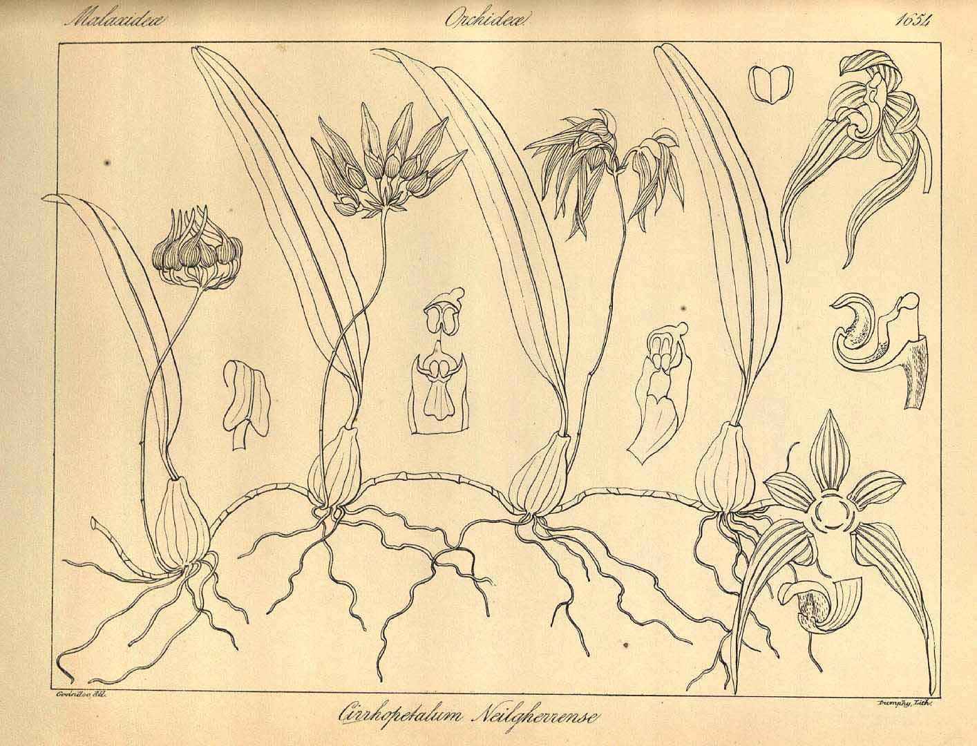 References W3 Tropicos, Kew Monocot list , IPNI ; Notes on Cirrhopetalum Seidenfadden 1973 drawing fide; Indian Orchids Guide to Identification and Culture Vol 2 Pradhan 1979 drawing fide; Orchids of Nilgiris Joseph 1987 drawing fide; Bulbophyllum and Their Allies Seigerist 2001 as Cirrhopetalum neilgherrense;