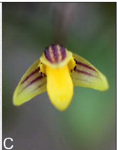 Found in Cambodia at elevations of 100 to 200 meters as a mini-miniature sized, hot growing epiphyte with a creeping, thin, wiry, greenish in youth, whitish-gray with age rhizome with .4 to 2" [1 to 5 cm] between each light olive, yellowish green to green, ovate, often oblique, slightly bending to the rhizome, irregularily longitudinally grooved and wrinkled pseudobulb carrying a single, apical, erect, coriaceous, narrowly ovate to ovate, condulicate, obtuse, subsesssile to very shortly petioalte base leaf that blooms in the late fall and early winter on a basal, ascending, filiform, sometimes slightly flexuous, light yellowish green, glabrous, .6 to 1" [1.5 to 2.5 cm] long, single flowered inflorescencewith one small basal, hyaline, goblet-shaped, clasping bract
