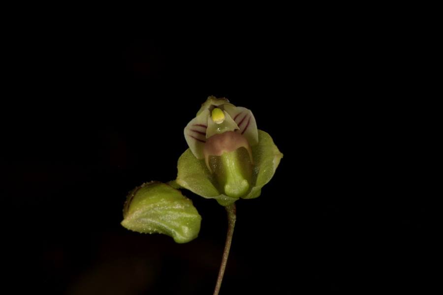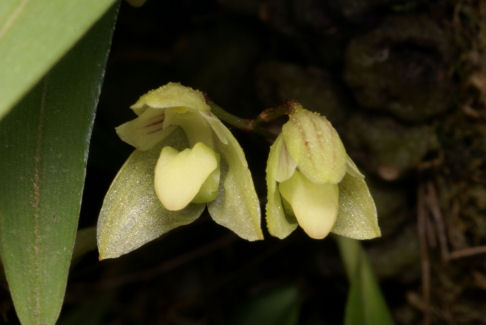 Found in Queensland Australia in highland rainforests in shade on shrubs, trees and rocks at elevations of 900 to 1600 meters as a mini-miniature sized, warm growing epiphtye or lithophyte with moderately crowded, somewhat flattened, pale green, deeply grooved pseduobulbs and carrying a single, apical, erect, dark green, stiff, obong, obtuse leaf that blooms in the mid spring through summer on a thread-like, .16 to .28" [4 to 7 cm] long, 1 to 4 flowered inflorescence