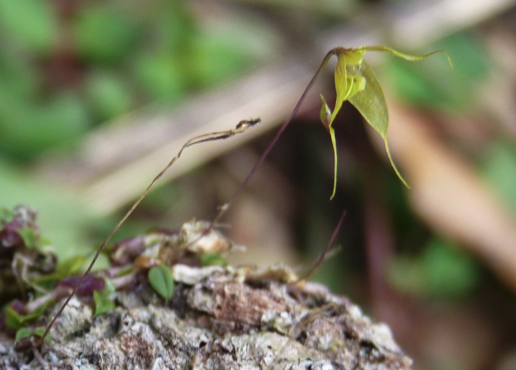 Found in northern and central Madagascar in mossy and lichen-rich forests at elevations of 800 to 2000 meters as a mini-miniature sized, warm to cool growing epiphyte with very small pseudobulbs carrying 2 apical, lanceolate-linear leaves that blooms in the mid summer on a setiform, provided with a small bract, single flowered inflorescence with lanceolate-acute floral bracts