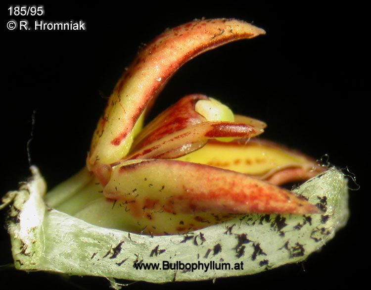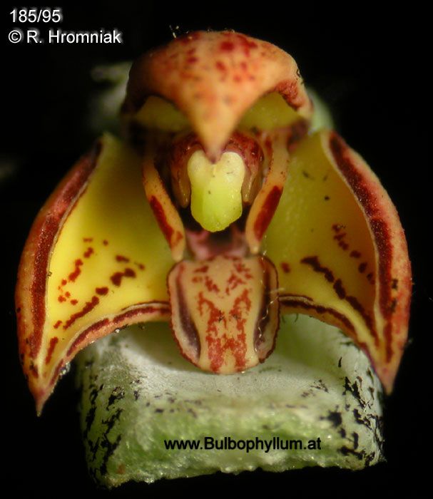 References W3 Tropicos, Kew Monocot list , IPNI ; Orchid Monographs Vol 2 - A Taxonomic Revision of the Continental African Bulbophyllinae Vermeullen 1987 photo/drawing fide AOS Bulletin Vol 32 # 10 1963; Flora Zambesiaca Vol 11 Orchidaceae Part 1 Pope 1995; Les Orchidees de Cote d'Ivorie Perez-Vera 2003 photo/drawing fide; AOS Bulletin Vol 79 #3 2010 drawing/photo fide; Genera Orchidacearum Vol 6 Epidendroideae Pt 3 Pridgeon, Cribb Chase & Ramussen 2014; Orchidaceae Of West Central Africa Vol 2 Szlachetko, Ejsmont, Baranow, Grochocka, Nowak, Margonska and Naczk 2015 drawing/photo fide