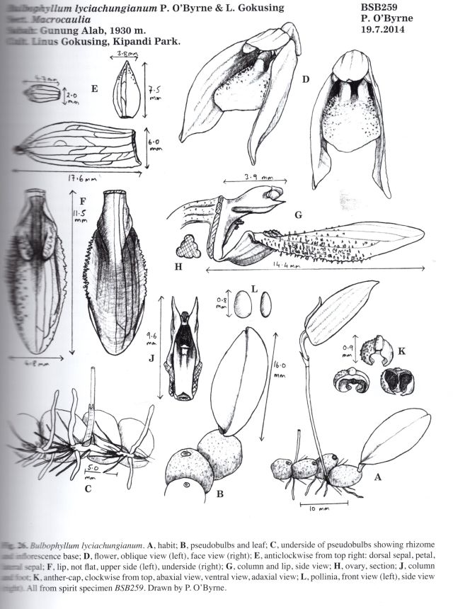 Bulbophyllum lyciachungianum P.O'Byrne & Gokusing 2016 SECTION Macrocaulia (Bl.) Aver 1994