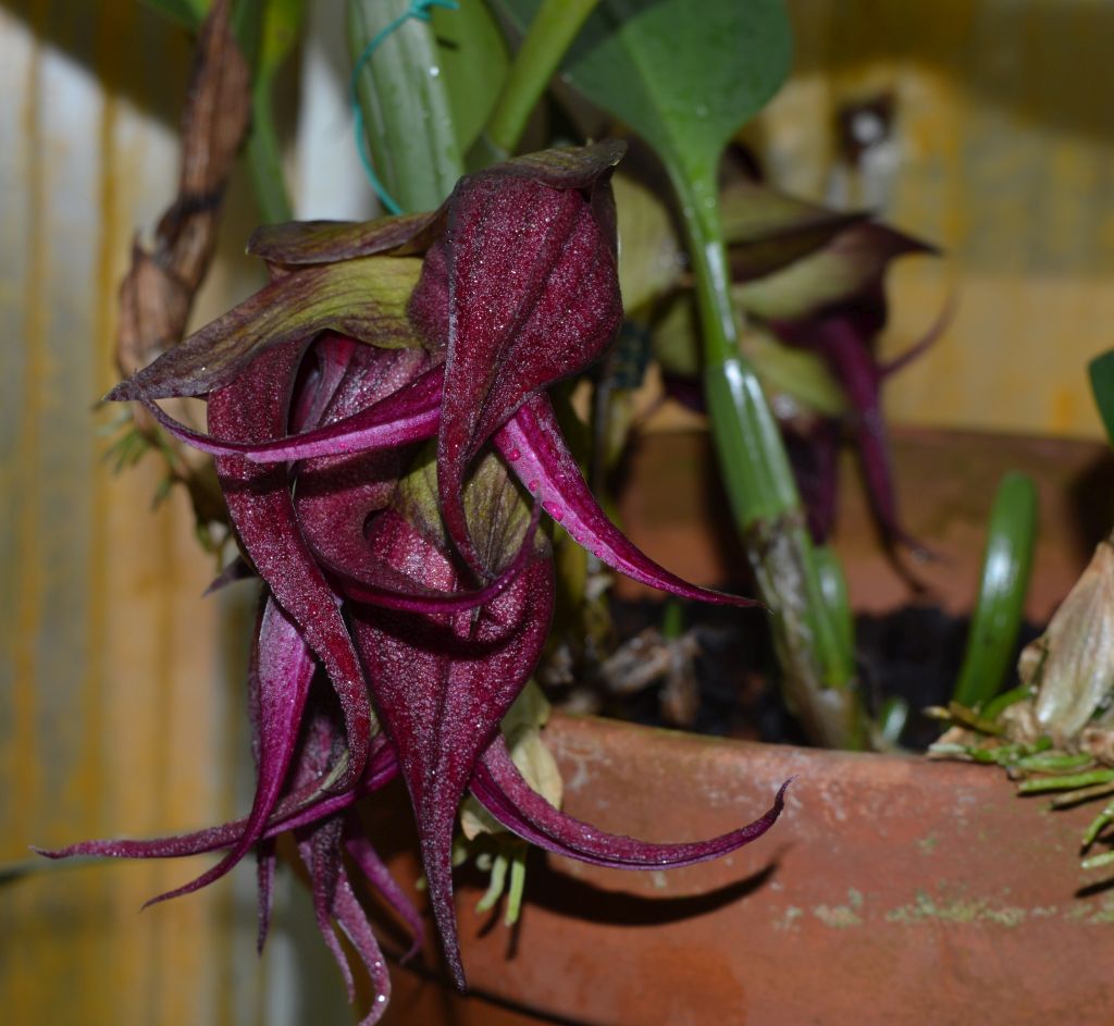 This species is similar to B magnum but this one differs mostly in the flowers that do not exceed the bracts much and the pointed lip