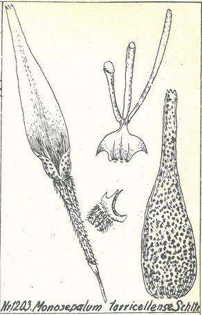 References W3 Tropicos, Kew Monocot list , IPNI ; Orchidaceae of German New Guinea Schlechter 1913 as Monosepalum torricellense drawing good; Die Orchideen Schlechter 1915 as Monosepalum torricellense; Die Orchideen lieferung 13 753 - 816 Bulbophyllinae 1983 as Monosepalum torricellense