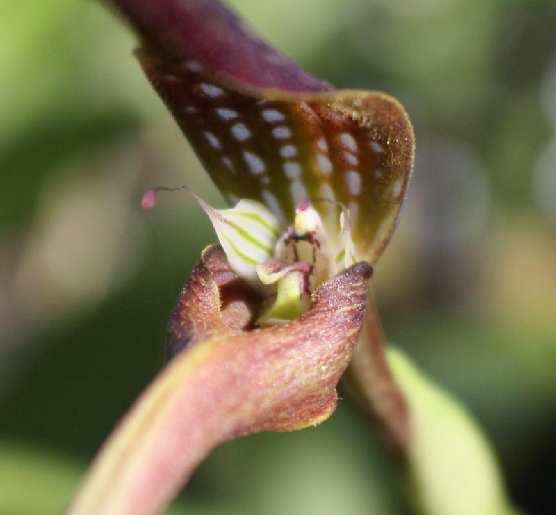 J J Vermeulen states that this species is separate from B. antenniferum but includes B ornithorhynchum as a synonym. There has been much confusion over these three species but the most distinctive separation is B antenniferum has an ovate-triangular lip that is .088 to .089" [2.2 to 2.9mm] wide and is slightly constricted approx half way along its length and is adaxially minutely hirsute in the center and glabrous to minutely hirsute towards the apex. B leysianum has an oblong, hardly widening towards its base lip that is adaxially coarsly hirsute in the midle half of its length and then grading to finely hirsute towards the base and the apex. The lip is .048 to .078" [1.2 to 1.9mm wide].
