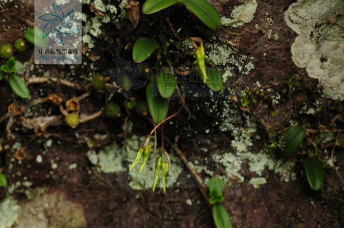 Found in north Fujian, north Guangdong, Guangxi, western Hubei, north Hunan and Zhejiang provinces of China, and Taiwan in forests on tree trunks and on rocks along valleys at elevations around 1000 to 2000 meters as a mini-miniature sized, cool to cold growing epiphyte with a creeping rhizome that has .6 to 1.4" [1.5 to 4 cm] between each ovoid-globose pseudobulb carrying a single, subsessile, oblong, thickly leathery, obtuse and retuse apically, cuneate below into the base leaf that blooms in the spring on a basal, erect, slender, 2 to 2.4" [5 to 6 cm], often 1 to 3 flowered, umbellate or condensed racemose inflorescence with 2 to 3 tubular sheaths and narrowly ovate, cymbiform floral bracts.