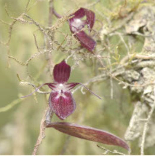Found in western New Guinea in evergreen broadleaved montane forest, on trunks covered with moss at elevations around 1700 to 1900 meters as a mini-miniature sized, cool growing epiphyte with very slender, creeping or pendulous, minutely warty rhizome giving rise to appressed to the stem, elliptic, fleshy pseudobulbs carrying a single, apical, subsessile, elliptic to ovate, mucronate apically, median nerve sunken leaf that blooms in the winter on a short, slender, .04" [.1 cm] long, provided with a basal long scale, single flowered inflorescence with at base tubular, apex caudate floral bract.