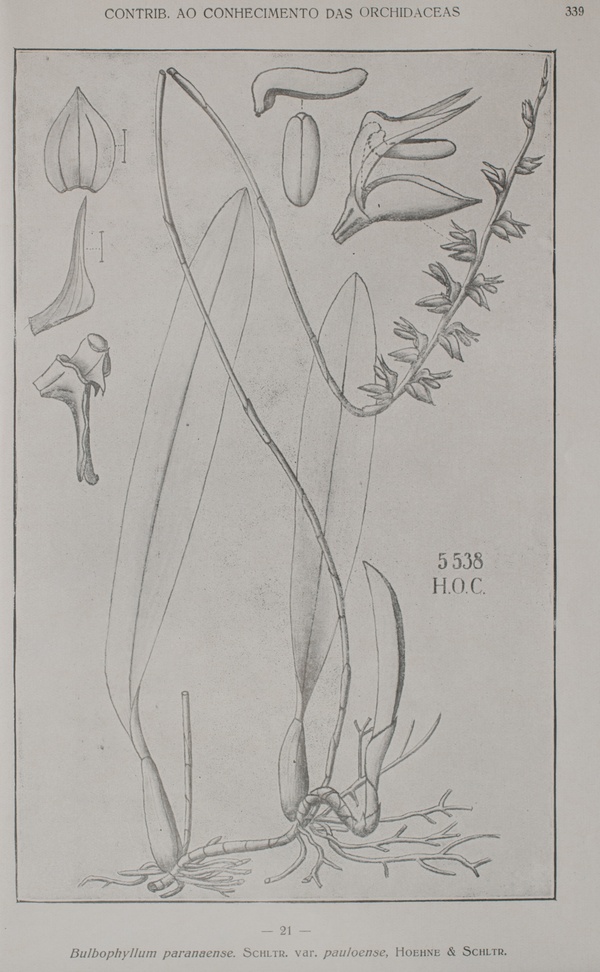 Bulbophyllum paranaense Schltr. 1919 SECTION Didactyle [Lindley] Cogn. 1902 Drawing by © Hoehne and Schlechter and The Swiss Orchid Foundation at the JanyRenz Herbaria Website