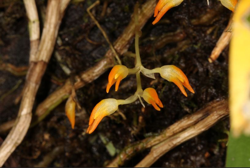Found in Assam, Sikkim, Myanmar, Thailand and Vietnam at elevations around 500 to 600 meters as a miniature sized, hot to warm growing epiphyte with cylindrical then tapering apically pseudobulbs that are enveloped basally by a triangular sheath and carrying a single, apical, lanceolate, recurved, acute leaf that blooms in the later spring and summer on a basal, 3/4" long, several [3 to 5] flowered inflorescnece with the flowers in an apical cluster.