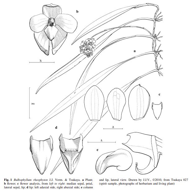 References W3 Tropicos, Kew Monocot list , IPNI ; * Pl. Syst. Evol. 293: 73 Jaap J. Vermeulen & Hirokazu Tsukaya 2011; An assumed rheophytic orchid: Bulbophyllum rheophyton n.sp., from Borneo; Bulbophyllum of Borneo J J Verm & O'Byrne & Lamb 2008 drawing fide