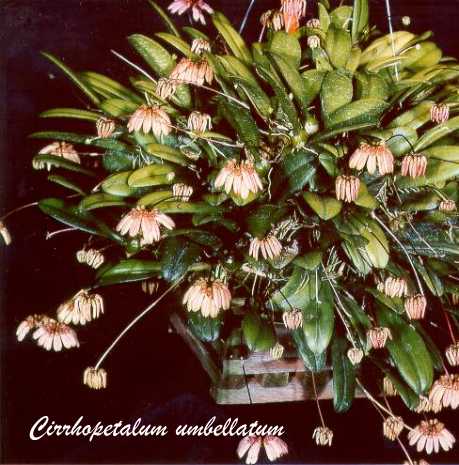 Found in Assam India, Sikkim and the eastern Himalayas in tropical valleys at elevations around 300 meters as a medium sized, hot growing epiphytic species with .6 to 1.2" [1.5 to 3 cm] between each subglobose pseudobulb enveloped basally by fibrous sheaths and carrying a single, apical, coriaceous, linear-oblong, obtuse, obliquely emarginate, sessile to shortly petiolate base leaf and blooms in the spring through summer on an erect, basal, to 8" [20 cm] long, slender, bracteate, 5 to 12 flowered inflorescence that exceeds the heigth of the leaves and has an apical umbel of flowers.