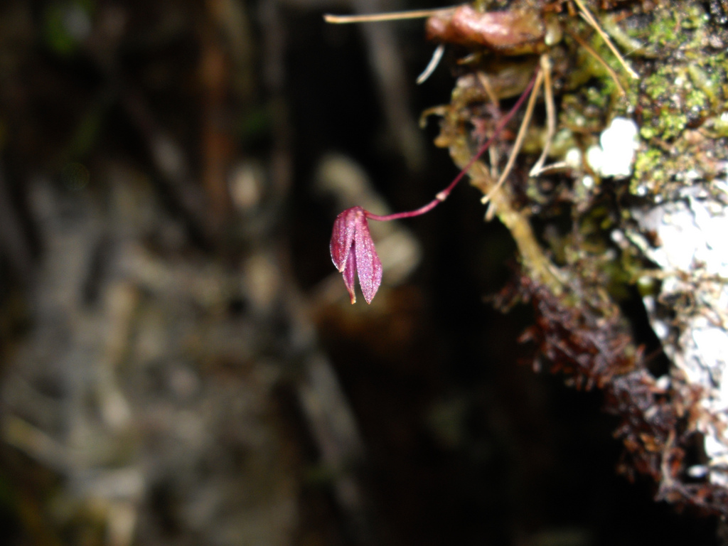 Found in Sabah Borneo in low and open mixed forests at elevations around 1500 meters as a mini-miniature sized, warm to cool growing epiphyte with close set, erect, ovoid pseudobulbs carrying a single, apical, erect, ovate, acute apically, abruptly narrowing below in to the petiolate base leaf that blooms in the fall on an erect to horizontal, 1.2" [3 cm] long, single flowered inflorescence.