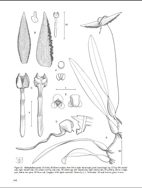 References W3 Tropicos, Kew Monocot list , IPNI ; *Nordic Journal of Botany 26: 129195, 2008 New species of Bulbophyllum from eastern Malesia (Orchidaceae) J J Verm 2008 drawing fide; Genera Orchidacearum Vol 6 Epidendroideae Pt 3 Pridgeon, Cribb Chase & Ramussen 2014 drawing fide