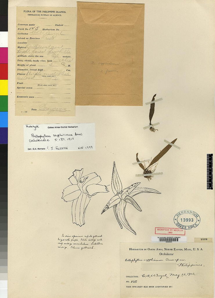 Bulbophyllum sapphirinum Ames 1915 SECTION Polymeres Verm & O'Byrne 2008