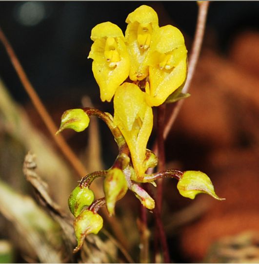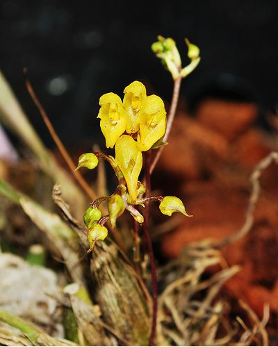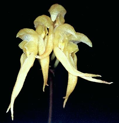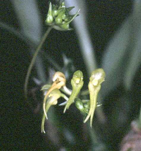 Found in Assam India, Bangladesh, eastern Himalayas, Nepal, Bhutan, Sikkim and Thailand as a miniature sized, cool growing epiphyte at elevations around 1000 to 2000 meters with crowded small, conical pseudobulbs [sulcate with age] carrying a single apical 6" [15 cm] long leaf that blooms in the spring on a basal, erect, 2 3/4" [7 cm] long inflorescence with an umbell of 3 to 6 flowers.