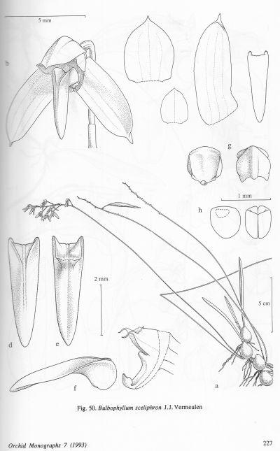 Bulbophyllum sceliphron J.J.Verm. 1991 SECTION Macrouris Schlecter 1913 Drawing © by Vermeullen
