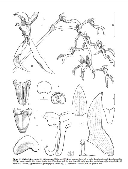 References W3 Tropicos, Kew Monocot list , IPNI ; *Nordic Journal of Botany 26: 129195, 2008; New species of Bulbophyllum from eastern Malesia (Orchidaceae) J J Verm 2008 drawing fide