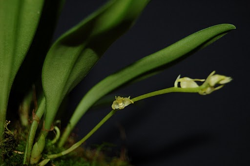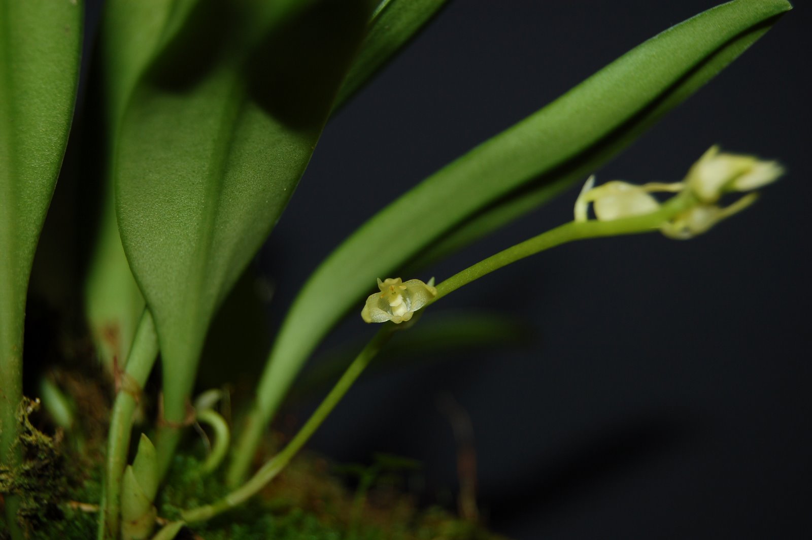 Found in western Java at elevations of 800 to 1000 meters as a miniature sized, hot to warm growing epiphyte with a short rhizome with .4" [1 cm] between each pseudobulb and carrying a single, apical, erect, narrowly lanceolate, acute, gradually narrowing below into the variable length petiolate base leaf that blooms at most any time of the year on a basal, 2.8 to 4.4" [7 to 11 cm] long, 2 to 4 flowered inflorescence