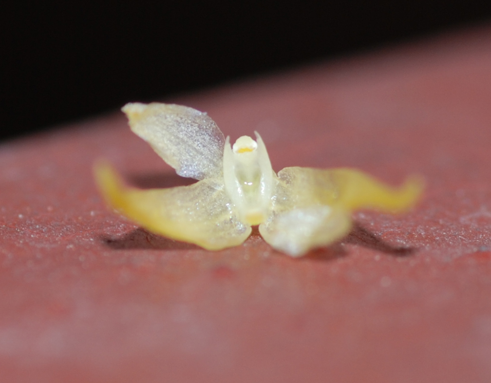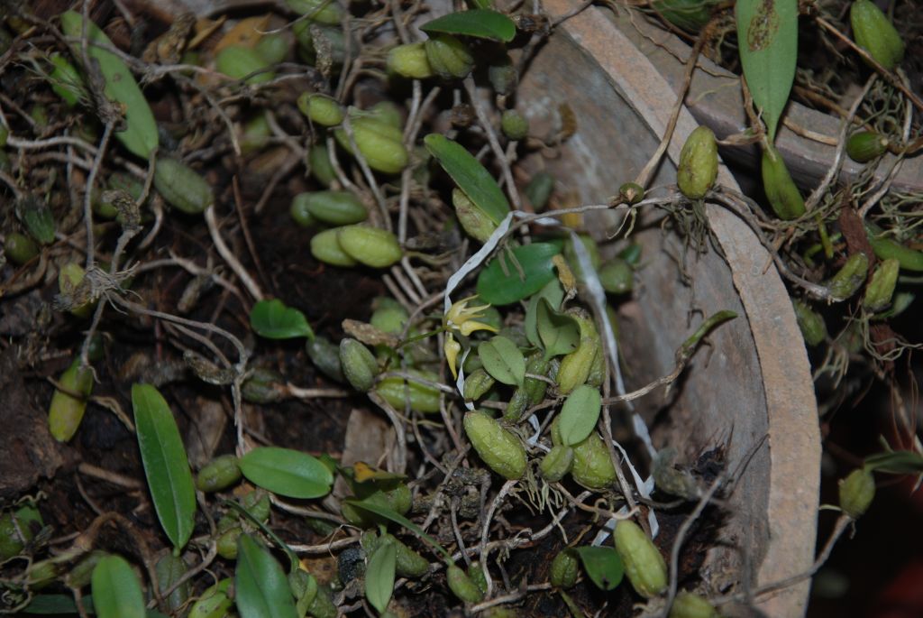 Found in the eastern Himalayas, Bhutan, Yunnan Pprovince ofChina, Vietnam, Myanmar and Thailand at elevations of 500-2500 meters high up on trees in evergreen forest as a miniature sized, cool to warm growing epiphyte or lithophyte with a slender, creeping rhizome with .6 to 2" [1.5 to 5 cm] between each, cylindric to narrowly cylindric pseduobulb carrying a single, apical erect, oblong, apically rounded, retuse, narrowing towards the petiolate base leaf that blooms in the fall on a basal, subumbellate, 2 to 10 flowered, filiform, 1 to 1.4" [2.5 to 3.5 cm] long, racemose inflorescence with basal tubular sheaths and lanceolate, acute, concave, membraneous, white floral bracts.