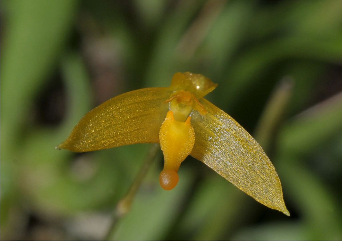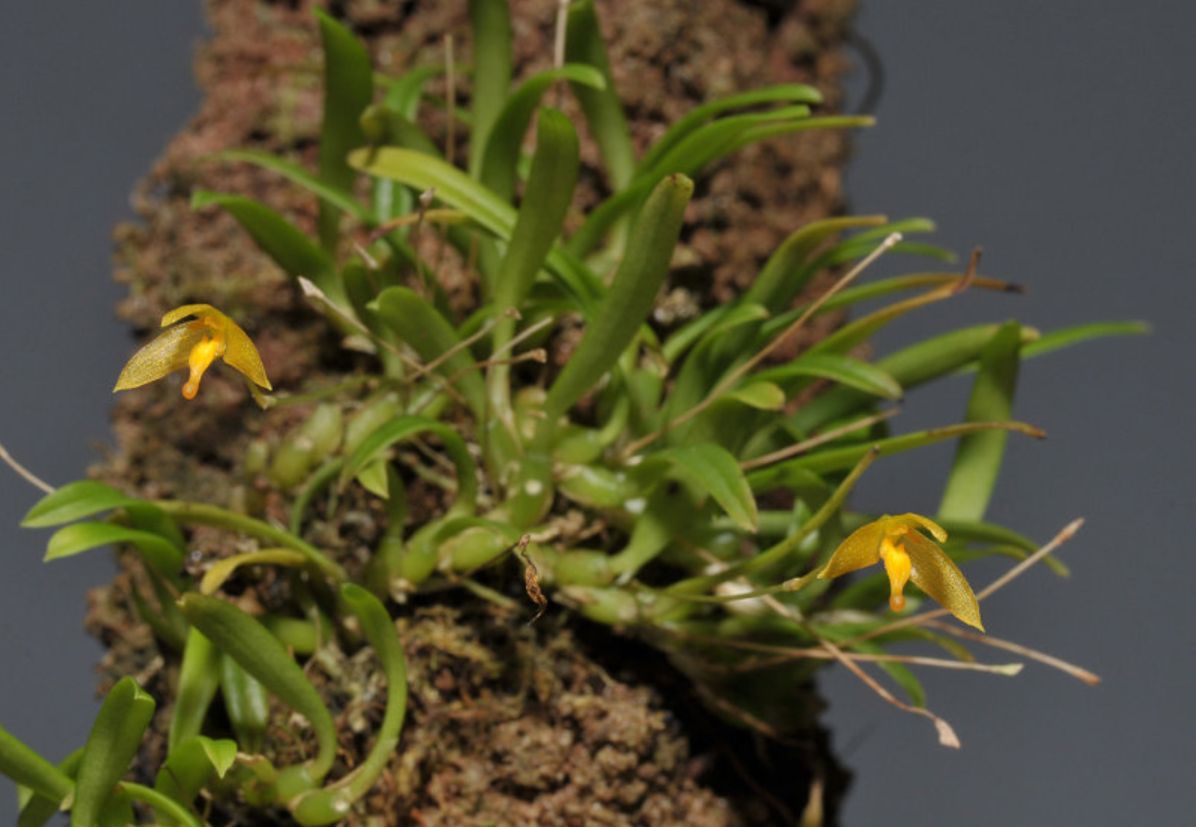 Found in Sulawesi on small trees in the understorey of low mossy montane forests at elevations of 1200 to 1400 meters as a creeping to straggling, mini-miniature sized, warm growing epiphyte with clustered, rather inconspicuous, aproximately ascending, ovoid to almost cylindrical, flattened on one side pseudobulbs carrying a single, apical, erect, coriaceous, elliptic, obtuse, gradually narrowing below in to the shortly petiolate base leaf that blooms in the late fall and early winter on a basal, 1.2 to 2" [3 to 5 cm] long, single flowered inflorescence with acute floral bracts.