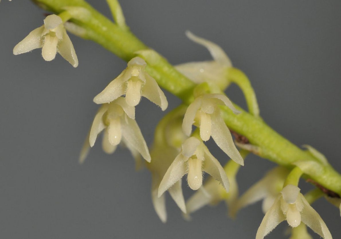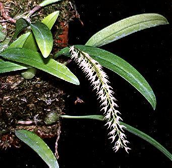 Found in the eastern Himalayas, Bhutan, Sikkim, Myanmar, Thailand and Vietnam at elevations of 800 to 2200 meters as a miniature sized, warm to cold growing epiphyte with 2" [5 cm] between each globose pseudobulb carrying a single, apical, linear leaf and blooms in the late spring and early summer on a 6" [15 cm] long, basal, racemose, many flowered inflorescence that holds the flowers above the leaves.