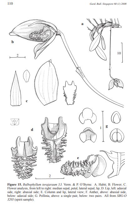 References W3 Tropicos, Kew Monocot list , IPNI ; * Gard. Bull. Singapore 60:111 fig 15 J.J.Verm. & P.O'Byrne 2008 drawing fide; Bulbophyllum of Sulawesi Vermeullen & O'Byrne 2011 drawing/photo fide