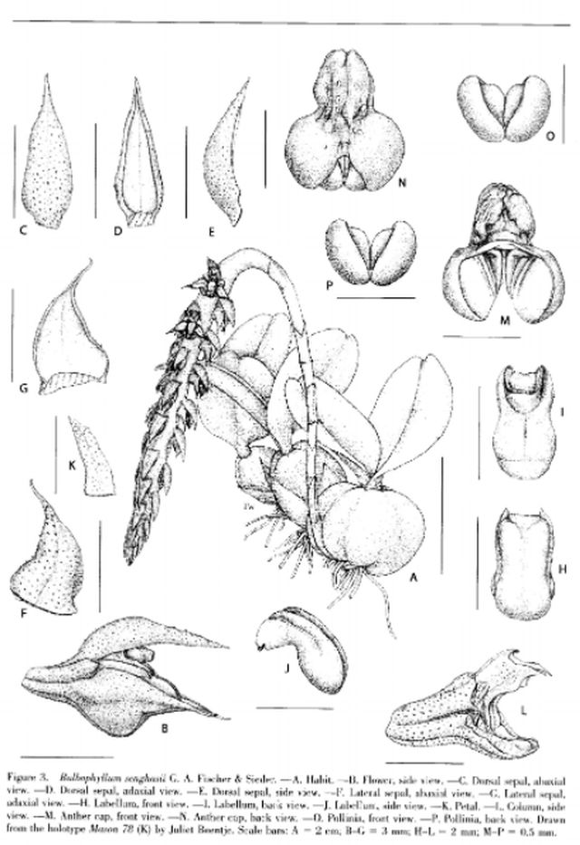 References W3 Tropicos, Kew Monocot list , IPNI ; * Novon 19:349 Rchb.f. ex G.A.Fisch. & P.J.Cribb 2009 Description of Four New Species of Bulbophyllum (Orchidaceae) from Madagascar drawing/photo fide