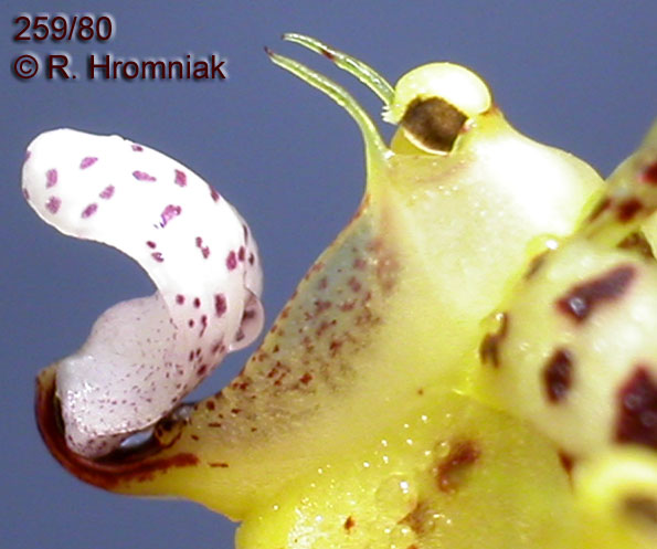 Bulbophyllum violaceolabellum Seidenf. 1981 SECTION Brachyantha Rchb.f 1861 Photos by © R Hromniak and A. Sieder and The Bulbophyllum A to Z Orchid Page Common Name The Purple Lipped Bulbophyllum - In China Deng E Juan Ban Lan