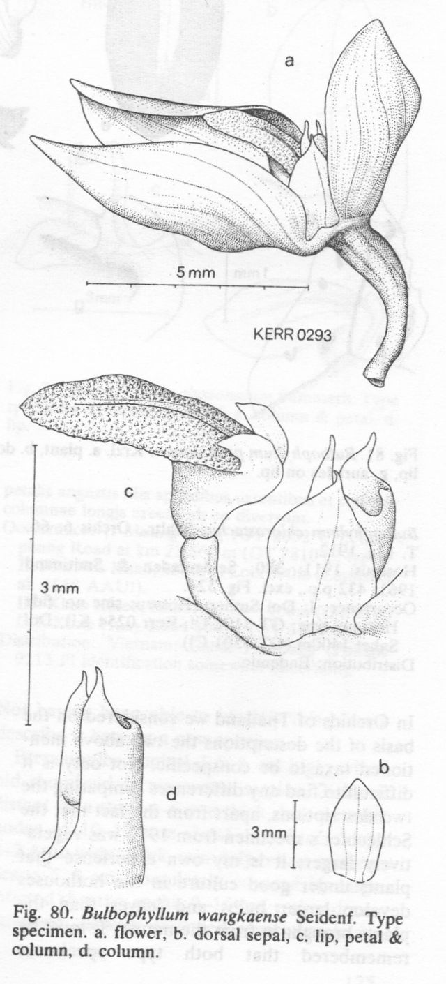 References W3 Tropicos, Kew Monocot list , IPNI ; * Dansk Botanisk Arkiv Bind 33 #3 Orchid Genera in Thailand VIII Bulbophyllum Thou Seidenfaden 1979 drawing fide; ;