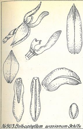 Bulbophyllum warianum Schltr. 1913 SECTION Codonosiphon Schlechter 1913 TYPE Drawing by © Schlechter and the Orchid Foundation at the Herbarium Jany Renz Website