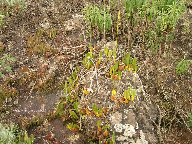 Found in Espirito Santo, Rio de Janiero and Minas Gerais states of Brazil and in Bolivia at elevations around 1000 to 1500 meters, as a miniature sized, cool to warm growing, unifoliate epiphyte with egg-shaped, 4 angled pseudobulbs carrying a single, apical, rigidly fleshy, oblong, obtuse leaf that blooms in the summer and fall on a basal, slender, 12" [30 cm] long, erect many flowered inflorescence that holds the 6" [15 cm] long, pendant rachis with the densely many, successively opening flowers held above the leaves.