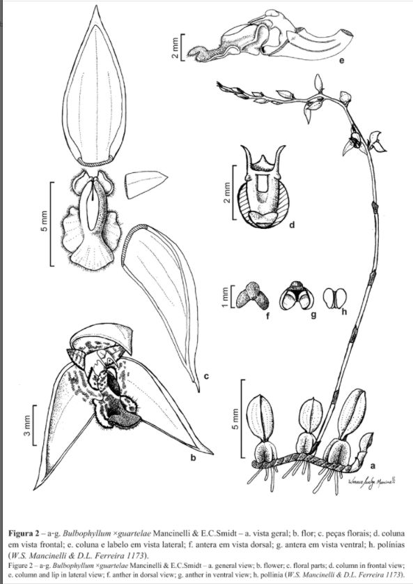 Bulbophyllum × guartelae Mancinelli & E.C.Smidt 2012 SECTION Didactyle [Lindley] Cogn. 1902 TYPE Drawing by © Mancinelli & E.C.Smidt and Rodriguésia 63 (4) • Dec Mancinelli and Ferriera 2012