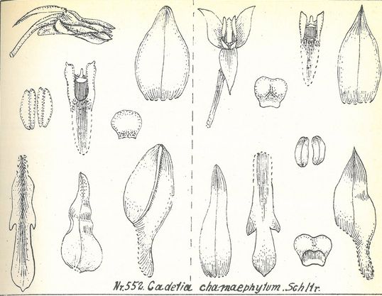 Cadetia chamaephytum (Schltr.) Schltr. 1912 SECTION Ptero-cadetia Drawing by © Schlechter and The Swiss Orchid Foundation at the Jany Renz Herbaria Website
