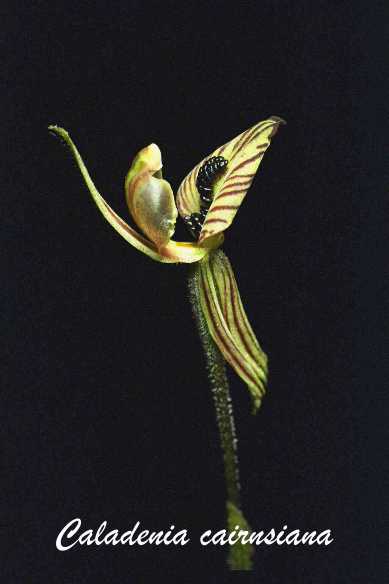 Synonyms Calonema cairnsianum (F.Muell.) D.L.Jones & M.A.Clem. 2001; Calonemorchis cairnsiana (F.Muell.) D.L.Jones & M.A.Clem. 2002; Jonesiopsis cairnsiana (F.Muell.) D.L.Jones & M.A.Clem. 2003; Phlebochilus cairnsiana (F. Muell.) Szlach. 2001