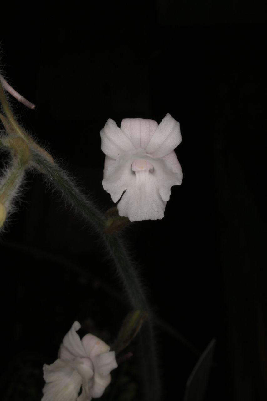 Found in Yunnan province of China, Thailand, Laos and Vietnam at elevations of 400 to 1900 meters as a medium sized, hot to cool growing growing terrestrial with ovoid, pyramidical, 5 to 6 ridged [when dry] pseudobulbs carrying 3 apical elliptic-lanceolate, acuminate, petiolate leaves that blooms in the fall on a basal, erect, pubescent, 2 1/2' [75 cm] long, loosely several to many [10 to 15] flowered inflorescence with ovate-lanceolate, narrow floral bracts with 10 to 20, showy flowers.