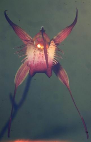 Caladenia ferruginea Nicholls 1947 SUBGENUS Arachnorchis Photo by Ron Heberle and the Thelymitra Page of The Species Orchid Society of Western Australia