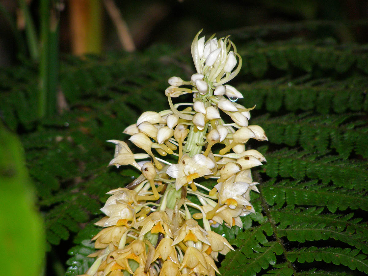Found in the Phillipines in montane forests at elevations of 600 to 1000 meters as a large sized, warm growing terrestrial with obscure pseudobulbs carrying very large, persistent, papery, flacid, oblong-lanceolate, acuminate, acute, elongate petiolate base leaves that blooms in the later fall and eary winter on a slightly shorter than the leaves, peduncle to 12.8 to 14.4" [32 to 36 cm] long, many flowered inflorescence with floral bracts that fall as the flowers open.