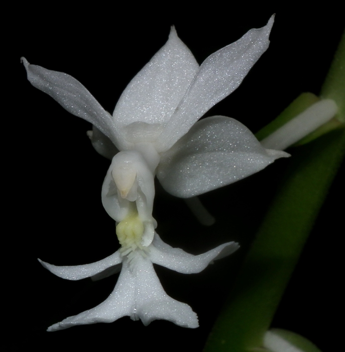 Found in the Philippines at elevations around 330 meters as a medium to large sized, hot growing terrestrial with obscure pseudobulbs carrying lanceolate, acuminate, gradually narrowing below into the petiolate base leaves that blooms in the late winter and early spring on an erect, sparsely pubescent, peduncle with several, loose, tubular sheaths, overall to 36" [90 cm] long, several flowered inflorescence with lanceolate, acute, persistent floral bracts .