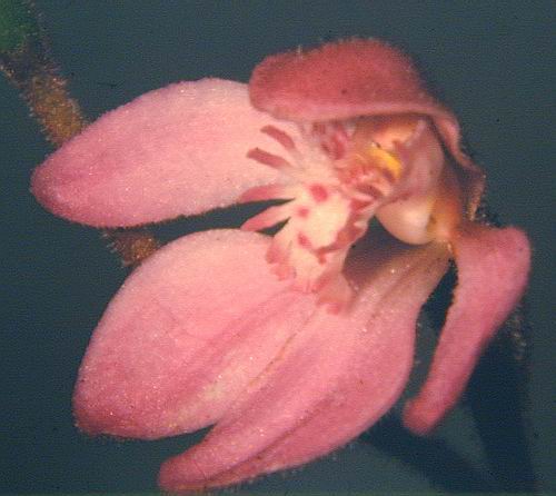 Often cited as a synonym of C reptans. This southwestern Australian orchid is a miniature sized, cold growing, colony-forming terrestrial locally common in Jarrah forests in well drained loams with a basally purple blotched, reddish beneath leaf that blooms in the spring after a grassfire has past the previous summer on a 2 to 6" [5 to 15 cm] long, pubescent, 1 to 3 flowered, apically swollen inflorescence.