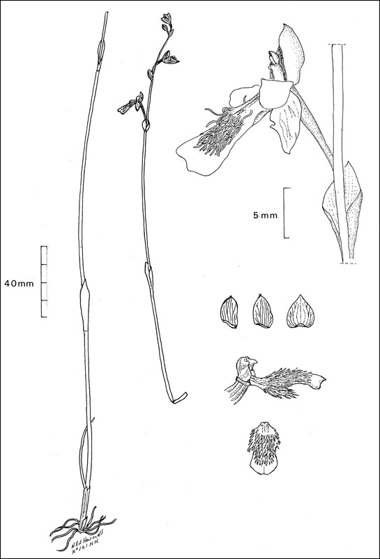 Calochilus caeruleus L.O.Williams 1946 Drawing by © N.H.S. Howcroft and The Malesian Orchid Species Illustrated Website
