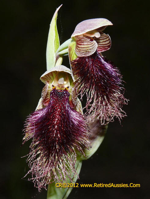 Calochilus platychilus D.L.Jones 2008 Photo by Colin & Misha Rowan and their Retired Aussies Website