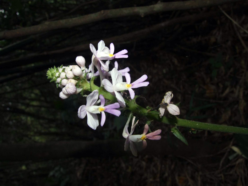 This species has often been put in synonymy with C triplicata but this one differs in the lilac flushed flowers with a lip that is usually narrower across the apex than across the base and has a short, incurved, tapering spur.