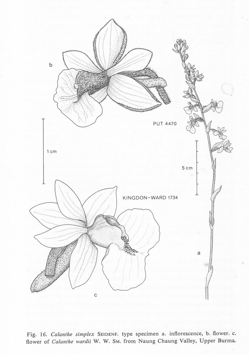 References W3 Tropicos, Kew Monocot list , IPNI ; *Dansk Botanisk Arkiv Orchid Genera in Thailand I Calanthe Seidenfadden 1975 drawing fide to drawing; Flora of China Vol 25 Zhengyi, Raven & Deyuan 2009; Flora of China Illustrations Vol 25 Zhengyi, Raven & Deyuan 2010 drawing fide; The Genus Calanthe Clayton & Cribb 2013