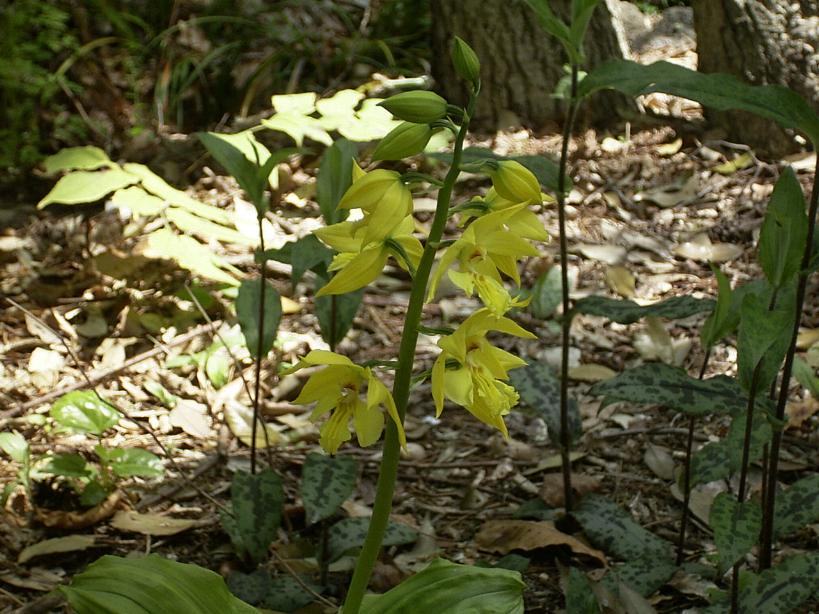Found in Taiwan, China, Korea, Ryukyu Islands and Japan in lowland and lower montane forests as a medium sized, cool to cold growing terrestrial with a small, ovoid pseudobulb enveloped by leaf sheaths and carrying broadly elliptic, plicate, acute, glabrous above, minutely pubescent beneath leaves that blooms in the winter through spring on an erect, developing before the leaves are fully expanded, glabrous, rachis to 2.4 to 6" [6 to 15 cm] long, overall 16 to 20" [40 to 50 cm] long, terminal, laxly many flowered, racemose inflorescence with linear-lanceolate, acuminate floral bracts and carrying citrus scented flowers.